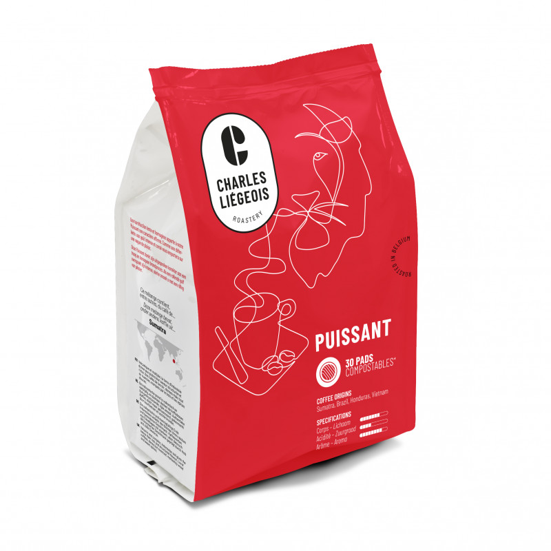 Café pads compostables Puissant Charles Liegeois - Carton 5 x 30